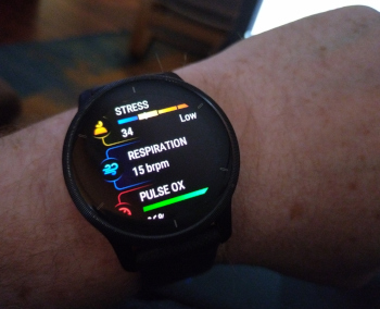 Some watches, including the Venu, allow you to review previous exercise sessions on the screen. So far as I know, there’s no way to see historical records related to all-day metrics like heart rate and respiration, nor to look at sleep patterns, on the watch itself. Although the history feature is useful, it’s not as useful as Garmin’s website or app, because it’s fiddly to find a specific activity using only the watch’s menu. It’s also important to bear in mind that the watch only has limited storage for exercise records.